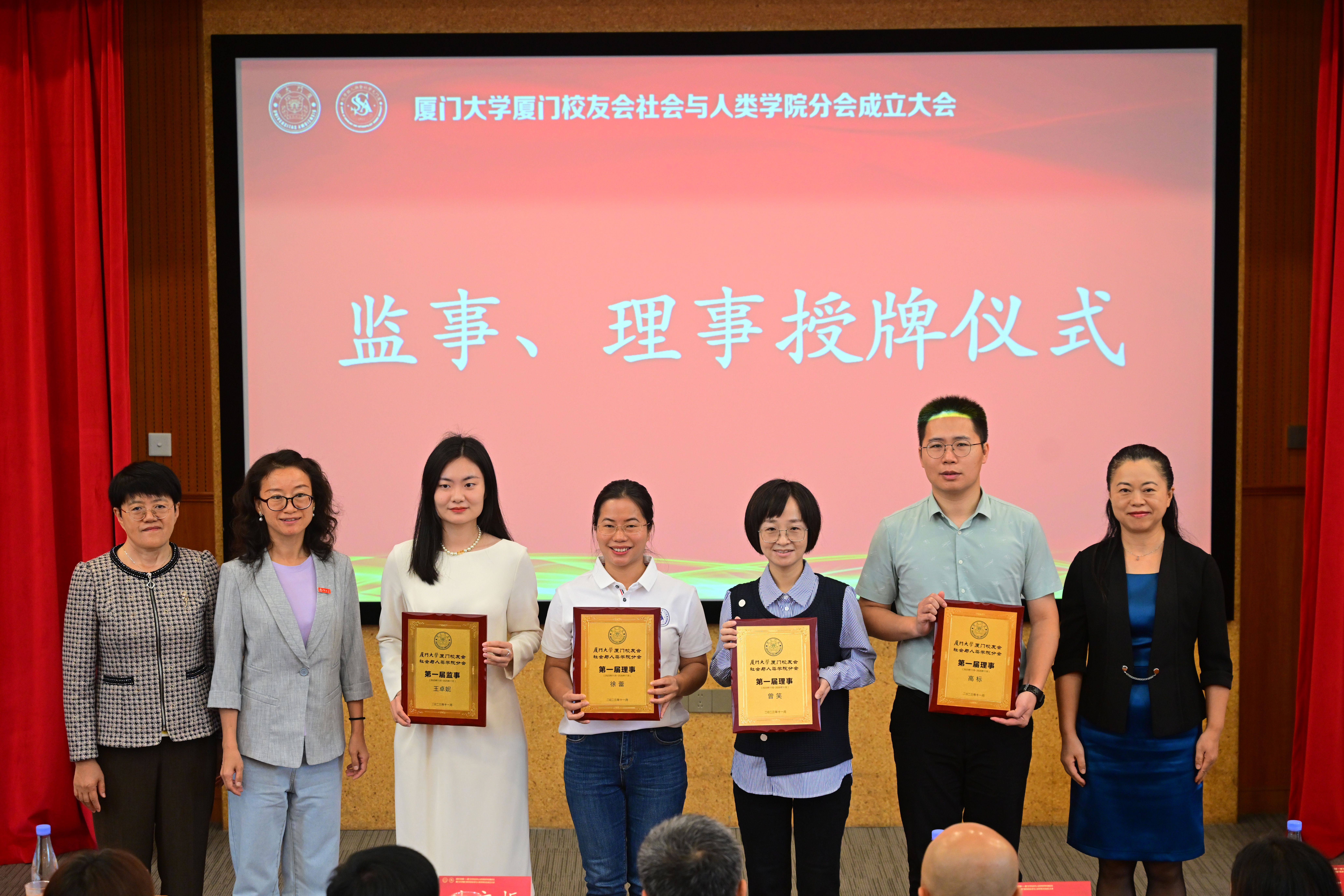 社会与人类学院党委副书记毛毛,副院长徐延辉、冯文晖分别为监事和理事授牌。