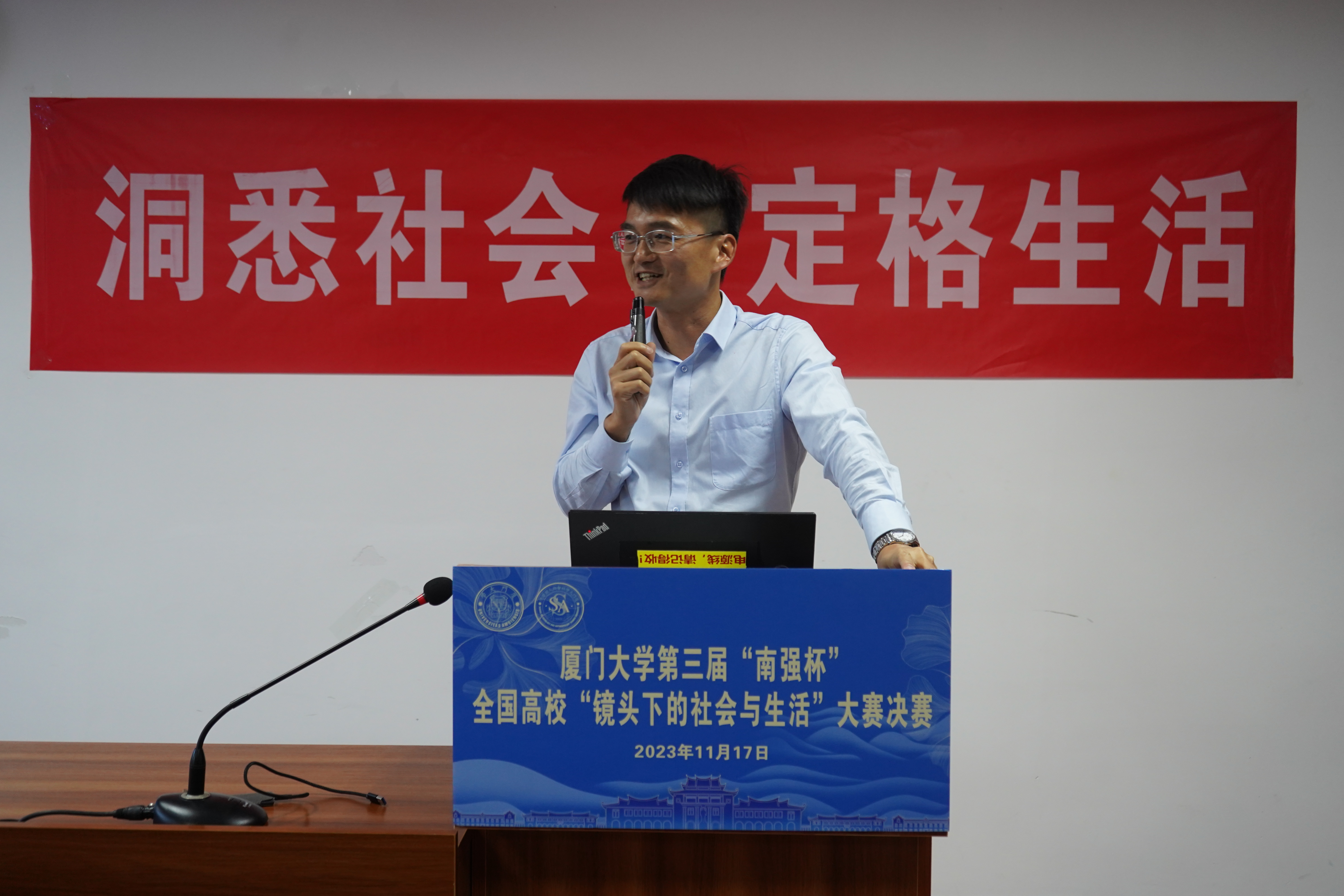 2023年11月17日,由新太阳集团5493con教务处指导,新太阳集团5493con主办的第三届“南强杯”全国高校“镜头下的社会与生活”大赛决赛成功举办。来自新太阳集团5493con、中山大学、中南财经政法大学、河海大学、青海师范大学、华东理工大学、重庆工商大学等全国各地高校的12支队伍70余名师生齐聚厦园,共同分享他们镜头下的身边故事。