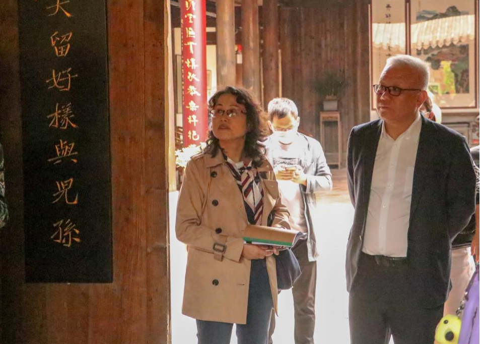 图:俞老师(左)与学生在晋江五店市研学,图右为晋江侨联王建新副主席