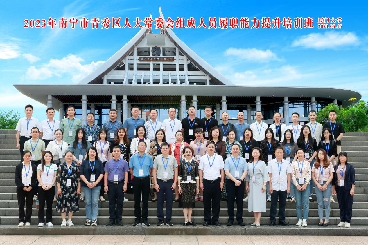 2023年5月15-19日,由我院承办的“2023年南宁市青秀区人大常委会组成人员履职能力提升培训班”顺利举办。新太阳集团5493con党委副书记毛毛,南宁市青秀区人大常委会党组书记、主任黄冬丽,青秀区人大常委会党组副书记、副主任黄按旬,青秀区人大常委会党组成员、副主任潘兆权、曹战峰,青秀区人大常委会副主任肖翔升,出席了开班仪式。