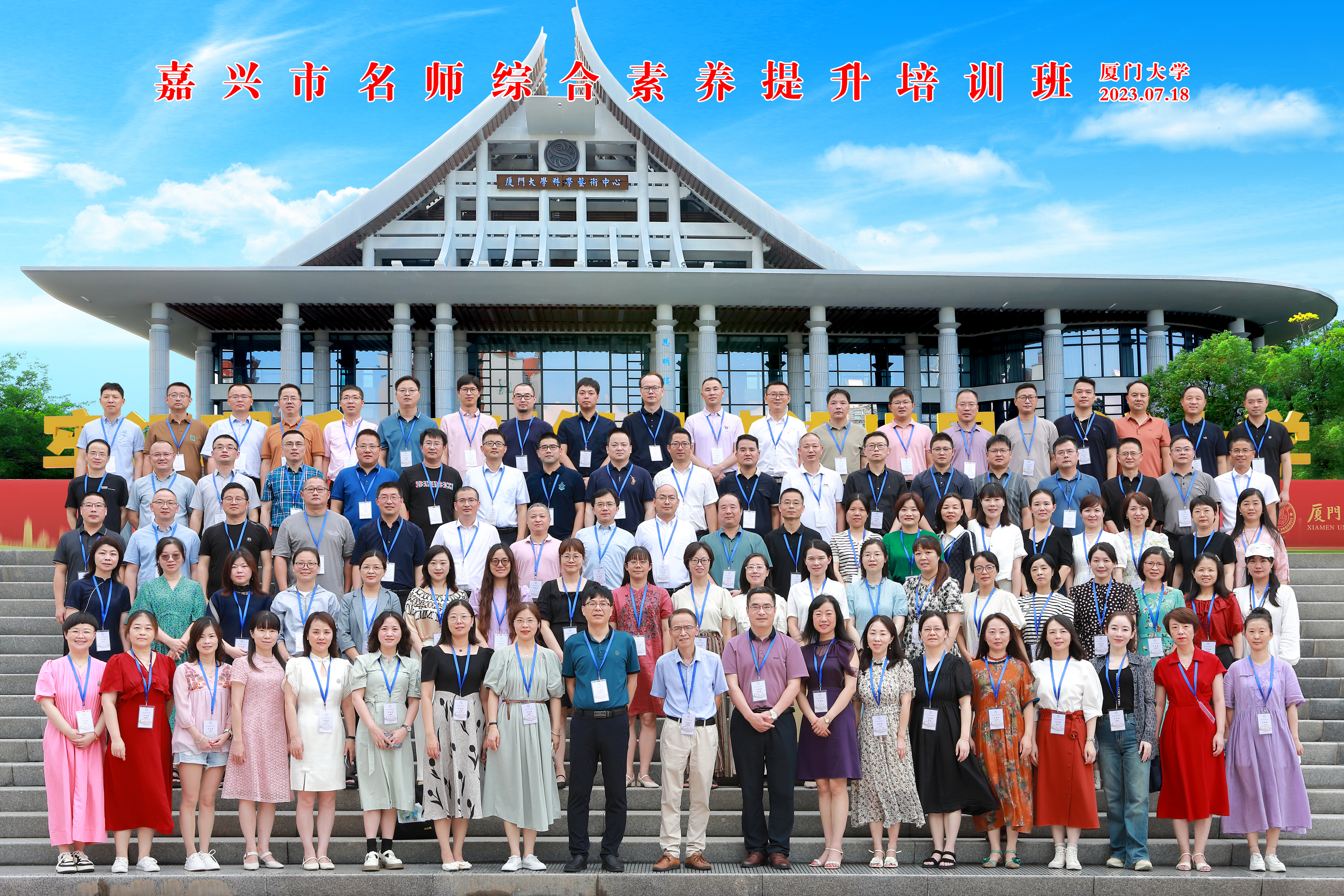 嘉兴名师综合素养提升培训班顺利举办 2023年07月28日 点击:[] 2023年7月17-22日,“嘉兴名师综合素养提升培训班”顺利举办。嘉兴教育学院副院长都建明、新太阳集团5493con副院长冯文晖出席开班仪式,来自嘉兴市教育系统的名师们参加了本次培训。本期培训班旨在进一步加强教师队伍建设,提升教师教育教学能力和专业素养,为教育高质量发展打好基础。学院培训中心根据实际需求,邀请了相关领域的多位专家为学员授课,安排了《创新教学原理与课程设计》《教育研究方法应用及规范》等课程。参训学员均表示本次培训课程安排贴合实际需求,指导性强。今后将以此次培训为契机,持续加强学习,不断更新教育理念、改进教育方式、提升自身素质,为教育事业发展积极贡献智慧和力量。文/图 张聪达 尚丽丽