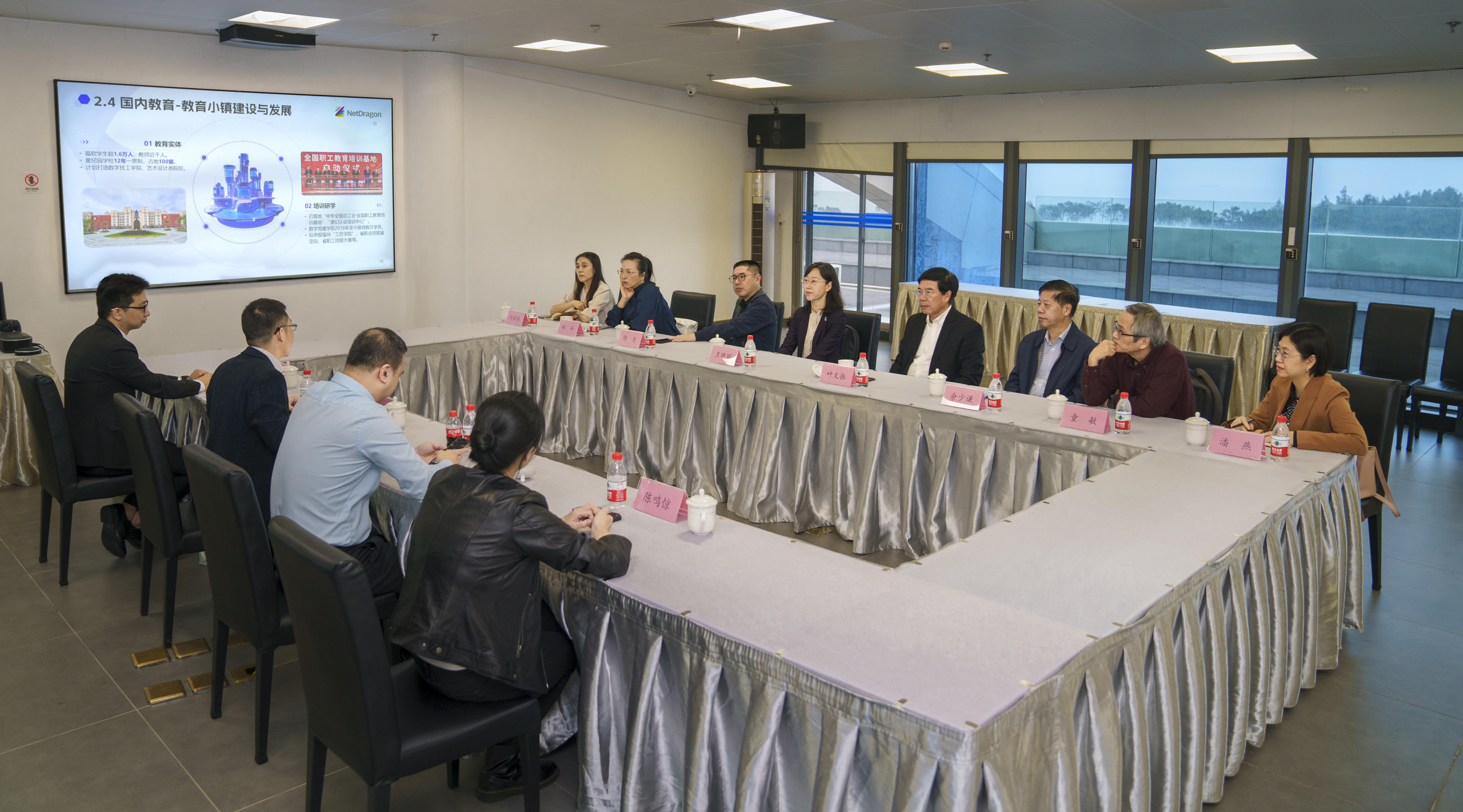 下午,学院一行前往网龙公司调研,在公司高级总监、学院2004届社会工作专业赖小辉校友陪同下,依次参观了数字教育小镇园区、VR体验馆、福州软件职业技术学院等项目,详细了解了网龙公司概况和数字教育示范区,深度体验了数字教育的前沿技术。随后,双方开展座谈,网龙数字教育小镇副总经理黄明华对学院一行表示热烈欢迎,希望进一步加强网龙公司与学院的合作交流。赖小辉详细介绍了公司发展历程、公司业务、获得荣誉以及网龙公司的教育理念、实践和成果。王晓丽表示,网龙公司是中国互联网行业的领军企业,学院希望在学科建设、人才培养、社会服务、毕业生就业等方面进一步加强校企合作。本次开展“访企拓岗”活动,就是为了更好了解用人单位对学院人才培养的需求,瞄准行业人才需求“靶心”,提升学院人才培养质量,助力毕业生“好就业”“就好业”。此外,双方还就共建虚拟实验室、设立实习实践基地、沉浸式教学研究等事项进行了交流。
